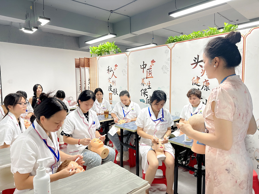廣西學(xué)美容面部、廣西學(xué)面部提升:想要掌握撥筋棒點(diǎn)按面部xue位的手法,在此之前,同學(xué)們必須跟著老師通過在假頭模上練習(xí)認(rèn)識和熟知不同xue位的作用后,才能正式開啟真人操作。