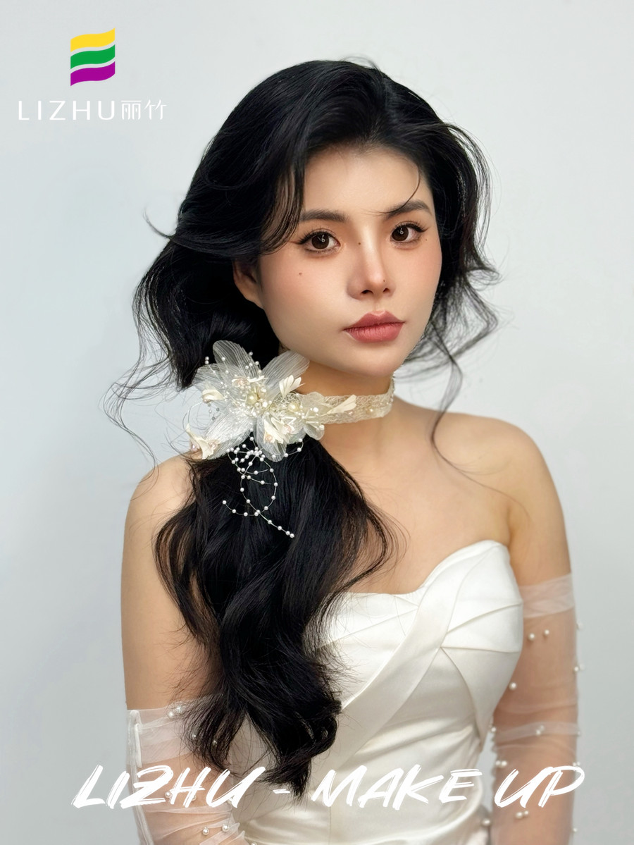 廣西學(xué)化妝影樓、廣西寫真化妝,廣西新娘妝跟妝培訓(xùn)(麗竹寫真化妝培訓(xùn))--- 韓式側(cè)扎紋理新娘:氧氣清新的自然無痕妝容,優(yōu)雅隨意的紋理韓式卷發(fā),白色蕾絲珠花頭飾側(cè)扎發(fā),打造氣質(zhì)滿滿的元氣美少女。