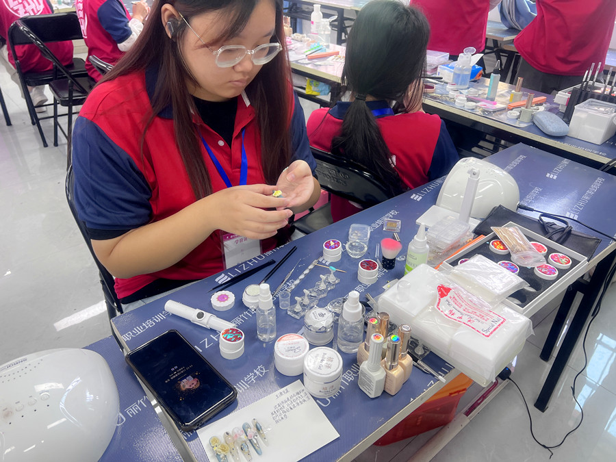 沒(méi)基礎(chǔ)學(xué)美甲學(xué)員正在進(jìn)行美甲作品制作